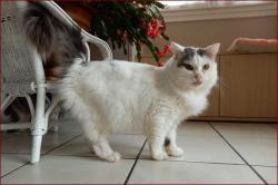 C’est un chat qui n’a jamais été seul, il aura besoin d’un copain chat placide impérativement. Dès qu’un chat vient le voir, il est en mode « curieux, je veux être ton copain ». Cela ne fonctionne pas toujours avec certaines félines de la maison qui ne sont pas très sympas avec lui.