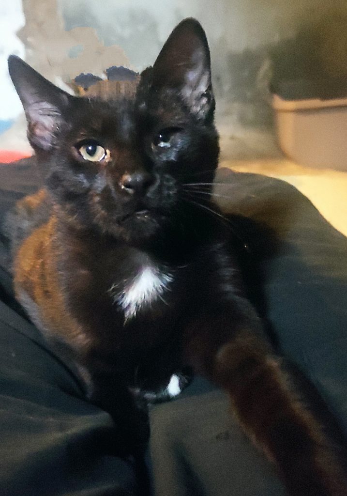 Tu es très câlin et à ce niveau ce ne sont plus des ronrons mais des bruits de moteurs d’avion au décollage. Tu adores dormir sur l’humain souvent avec tes deux frangins et tu t’étires de tout ton long.