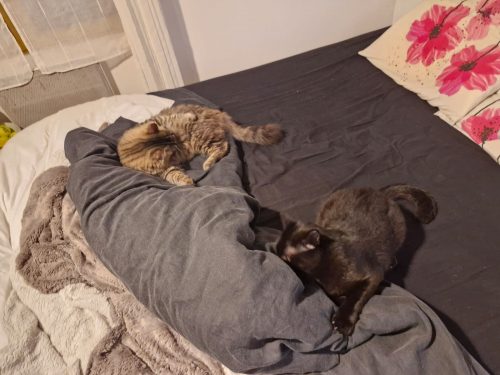 Il paraît que nous sommes deux chats très attachants, câlins, géniaux et complémentaires.