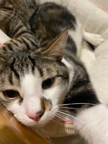 Nous sommes toujours ensemble et Tifaine ne nous imagine pas l’un sans l’autre, je sais ça complexifie un peu mais il faut prioriser le bien-être des chats, n’est-ce pas !!
