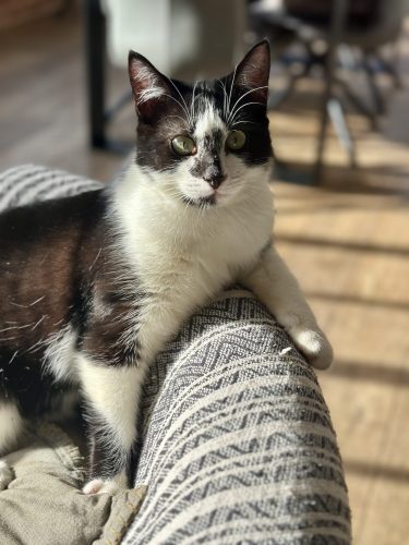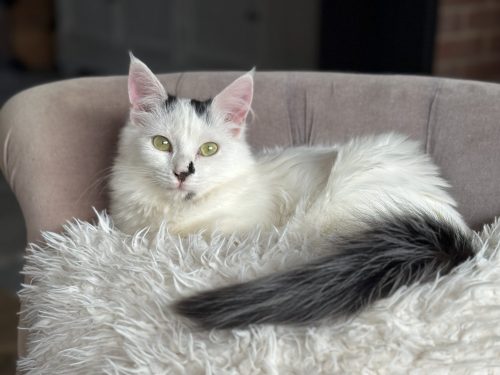 Dès que cette fichue teigne a été guérie, direction Claudie où nous sommes encore actuellement, nous sommes devenus des chats très câlins avec en mode chef de meute Ayesha qui est toujours la première à aller dire bonjour en mode viens Ayush, pas d’inquiétude.Nous adorons les genoux, les bras, les câlins, les séances de jeux interminables, la bonne nourriture, …