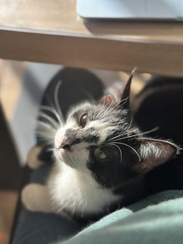 Nous dirions que cela nous a rapprochés, entre les bains, le médicament chaque soir, on a vite compris que les câlins c’était chouette et que les dodos moelleux aussi, nous adorons les pattouner en ronronnant !